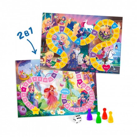 Одна игра – два красочных мира: сказочный лес фей и замок принцессы! Бросайте кубик – и отправляйтесь в волшебный мир вместе с ребёнком! Играйте, осваивайте счёт и развивайте мелкую моторику – с удовольствием!
