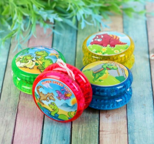 Йо-йо световой Динозавр – представляет собой 2 одинаковых диска на длинной веревочке, надежно соединенных между собой. При броске Йо-Йо отлетает в противоположную от руки сторону, а затем по инерции наматывается обратно на веревочку и возвращается в руку. Это простая и увлекательная игрушка может стать отличным подарком, ведь она знакома каждому ребенку!