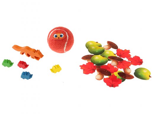 Соревнуйтесь с друзьями в ежиной перекати-гонке: бросайте мохнатый мячик на жетоны-липучки и собирайте яблочки, листочки и грибочки, чтобы продвинуться по лесной тропинке к домику ежа.