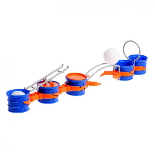 - Соберите трассу только из стаканчиков, а подставку для шарика установите посередине.