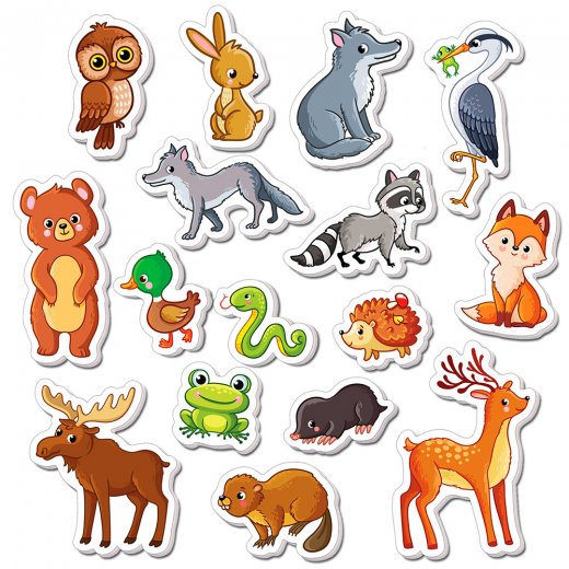В процессе игры расскажите малышу о лесных животных, помогите придумать сюжеты взаимодействия героев (например, хищников и травоядных).
