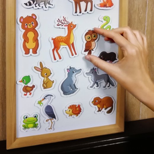 Фигурки можно разместить на холодильнике или магнитной доске. Благодаря толщине материала ребёнку будет удобно перемещать фигурки по поверхности.