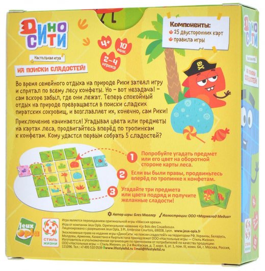 ДиноСити: на поиски сладостей! – это отличная игра на память, которую удобно брать с собой в дорогу, чтобы с пользой провести время.