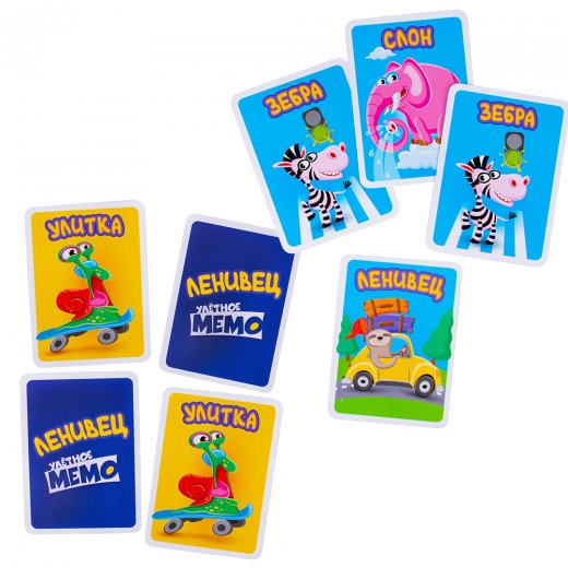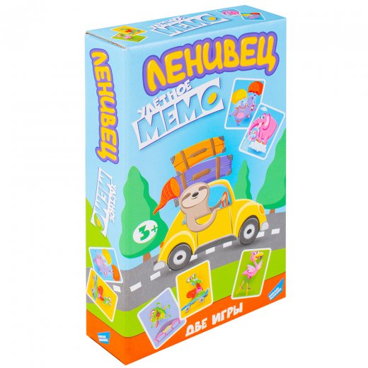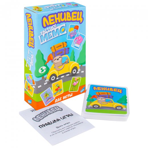 Ленивец и Улётное мемо - 2 игры в 1 коробке! Мы собрали самые увлекательные игры на внимательность и сообразительность для детей от 3-х лет. Игра №1 - Ленивец: Раздайте все карты между игроками, а затем не глядя вытягивайте карту у соседа. Нашли парные карты? Выкладывайте их на стол! Проиграет тот, кто останется с непарной картой ленивца в конце игры!