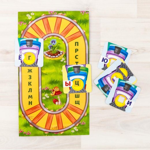 На рельсах игрового поля указаны согласные, а на самих вагончиках - гласные. Чтобы сделать игру интереснее, называйте слоги станциями. Например, если в окошке вагончика показалась буква Б, то при соединении букв А и Б получается станция БА.