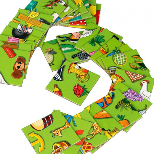 Вам необходимо сложить из 30-ти маленьких квадратных карточек большое изображение таким образом, чтобы каждая картинка нашла свою вторую половинку. Обратите внимание, что рисунок получается незамкнутый, это значит, что картинку можно положить с любой стороны.