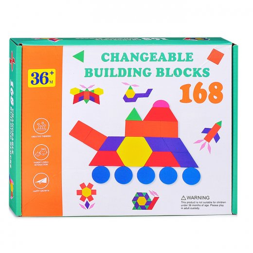 В комплекте 168 элементов и 10 двусторонних карточек для выкладывания из элементов различных фигур.