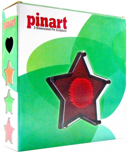 Экспресс скульптор Pinart Звезда - это прибор, представляющий собой пластину-основание, на которой закреплены пластмассовые стержни (гвоздики), закрытые прозрачной передней панелью. Чтобы создать слепок, опустите устройство горизонтально-прозрачной поверхностью вверх - так все стерженьки должны упасть. Затем расположите экспресс-скульптор вертикально и приложите ладонь или какой-нибудь предмет к ровной поверхности гвоздиков. Ваше творение готово! Объёмный отпечаток получается точным до мелочей.