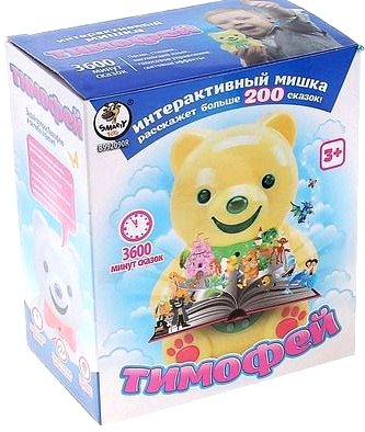 Кроме всего прочего, мишка Тимофей будет учить Вашего ребенка английскому языку - прося его повторить различные английские слова. Ещё у мишки светятся глазки, а качество озвучки Тимофея Вас сильно обрадует - голос весёлый четкий и понятный. Мишка Тимофей станет любимой игрушкой Вашего ребёнка. Мишка знает 240 сказок, которые можно слушать в течение 60 часов, а так же Тимофей поет песни (40 песен) и знает стихи. В наборе к мишке идёт инструкция, в которой указан список всех сказок, знакомых Тимофею и подробно описано управление игрушкой.