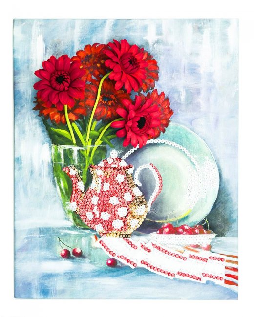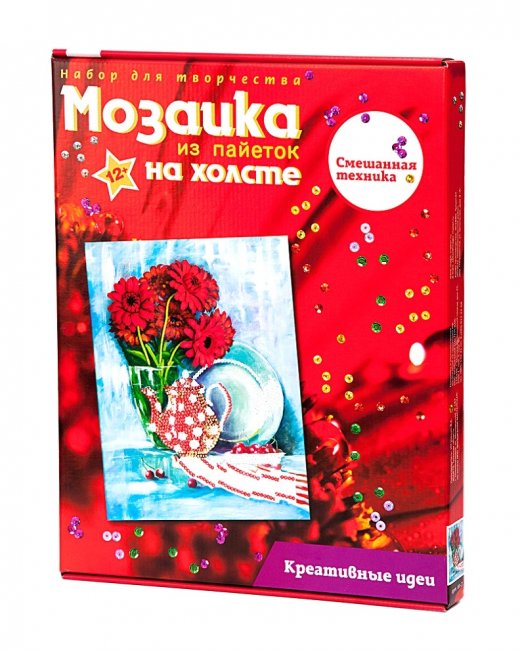 Купить Мозаику из пайеток на холсте Герберы в Новосибирске Вы можете в магазине развивающих и настольных игр "Игры Почемучек"