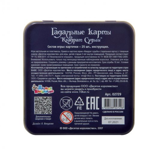Гадальные карты в жестяной коробочке «Квадрат судьбы» помогут весело провести время в кругу семьи или друзей и послужат отличным подарком для любителей гадания.