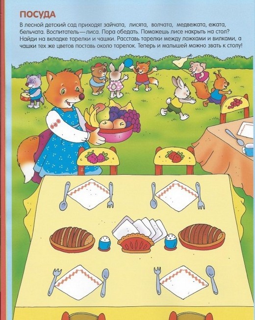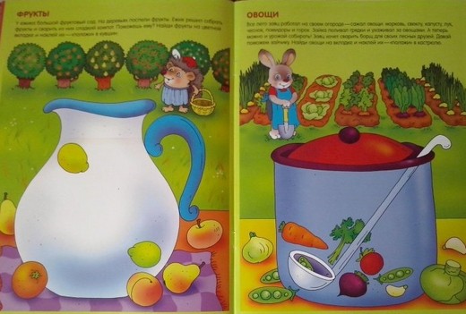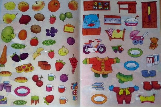 Во время игры ребенок научится сравнивать и обобщать предметы в группы по определенным признакам. Побуждайте малыша как можно чаще использовать общие слова в устной речи: так он быстро освоит их назначение и научится правильно применять. Эта увлекательная игра даст ребенку возможность поучаствовать в создании книги. Спросите, почему на одной странице он поместил картошку, морковку, горошек и лук? Ответ — все это овощи. На двух приложениях малыш найдет больше 50 многоразовых наклеек. Они представляют собой плотную клейкую пленку и легко отделяются от основы, поэтому их можно переклеивать с места на место, не боясь испортить книжку или допустить ошибку. А яркие цвета вызовут у крохи настоящий восторг!