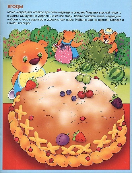 В книге с многоразовыми наклейками "Собери картинку" малышу предлагаются игровые задания, в ходе выполнения которых он должен приклеить наклейки на правильные картинки-основы. Иным словами, из множества наклеек нужно выбрать те, которые называются одним словом: ягоды, фрукты, овощи, посуда, мебель, игрушки, одежда, продукты. Например, ягодами кроха украсит праздничный торт, а игрушки разделит между бельчатами.