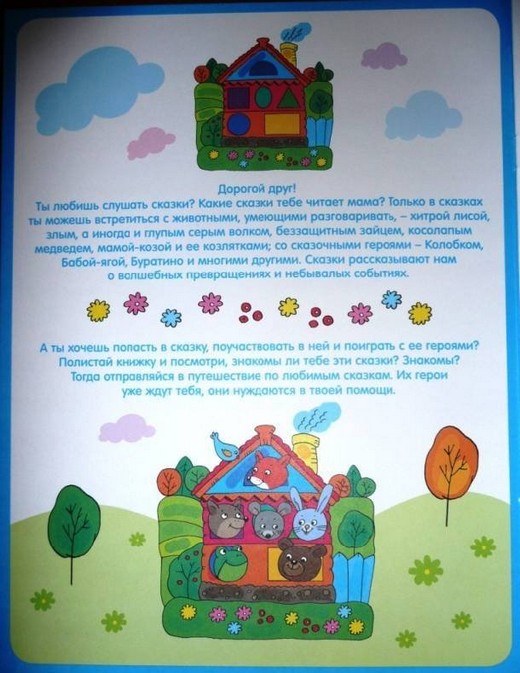 Какой ребенок не мечтает очутиться в любимой сказке? С помощью этой увлекательной книги малыш познакомится с русскими народными сказками («Репка», «Колобок», «Теремок», «Волк и семеро козлят» «Заюшкина избушка») и авторскими сказками («Три медведя» Л. Толстого, «Три поросенка» С. Михалкова). Помогая сказочным персонажам, ребенок станет активным участником сказки. Наклейки в книге многоразовые, так что малыш может смело экспериментировать, не боясь ошибиться.