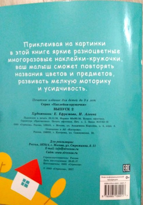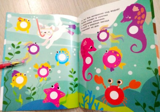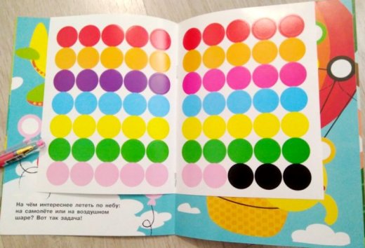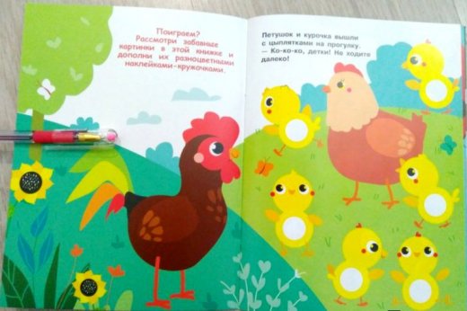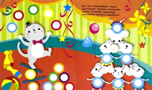 Такая яркая и красочная книжка без труда привлечет внимание ребенка и увлечет в занятие с собой надолго и с огромным интересом, подарив при этом массу положительных эмоций. Приклеивая на картинки в этой книге яркие разноцветные многоразовые наклейки - кружочки, ваш малыш сможет повторять названия цветов и предметов, развивать мелкую моторику и усидчивость.