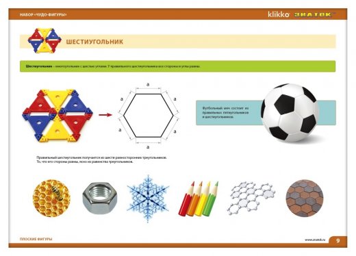 Конструктор Знаток Чудо фигуры является логическим продолжением наборов «Чудо квадраты» и «Чудо треугольники». Набор содержит 102 детали и красочную инструкцию с подробным описанием сборки 43 проектов. В инструкции можно будет найти и образовательную часть, знакомящую ребёнка с основами геометрии. Инструкция состоит из четырех разделов, от простого к сложному: «Плоские фигуры», «Объемные фигуры», «Фигуры трансформеры» и «Арт-фигуры».