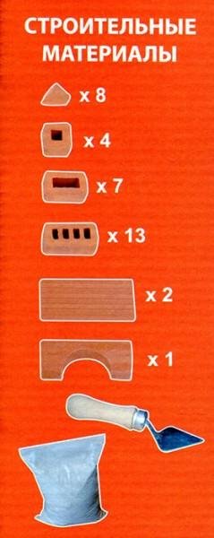 Состав набора: керамические детали - 35 шт., строительная смесь, деревянный мастерок, инструкция.