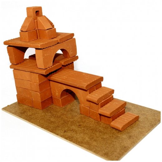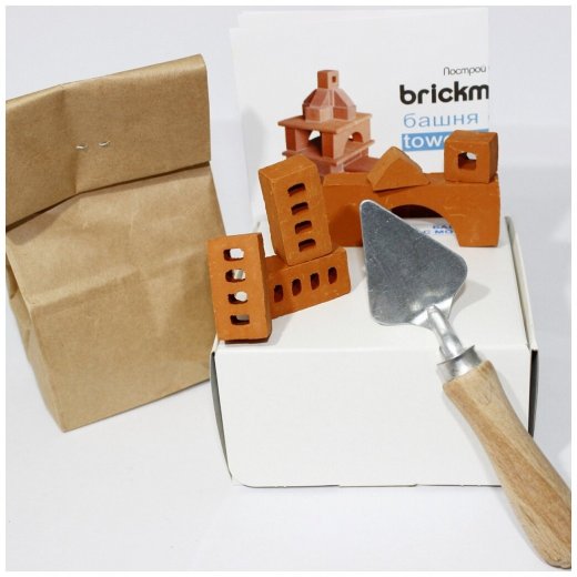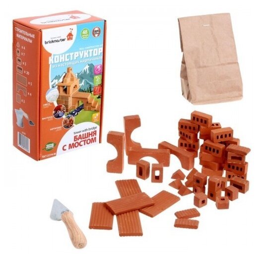 «Башня с мостом» - набор, включает в себя 48 различных настоящих маленьких кирпичиков, специальную строительную смесь из песка и крахмала, миску, мастерок и подробную красочную инструкцию.