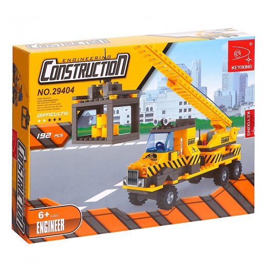 - Набор содержит 192 детали и позволяет сконструировать спецтехнику и фигурки рабочих.