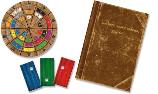 В этой игре нет игрового поля. Вообразите сами, что вы увидите в этой игре и как выглядит комната. В начале игры вам доступны только книга и диск декодер. В дальнейшем вы будете получать карточки Загадок – которые встретятся в иллюстрации или тексте. Как только это произойдет, вы возьмете соответствующую карточку из стопки карточек Загадок и откроете ее.