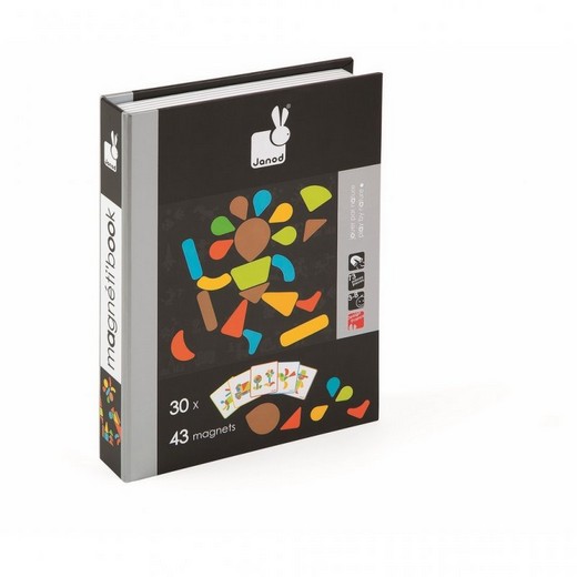 В наборе вы найдете 43 магнитных элемента различных форм, размеров и цветов, а также комплект карточек, на которых изображены различные варианты фигур, которые можно собрать из этого набора. Кроме фигур на карточках, можно собрать еще великое множество различных мозаик - придумывайте, и воплощайте свои идеи.Собирая такую мозаику, малыш развивает свое логическое и абстрактное мышление, фантазию, научится собирать знакомые ему фигуры из элементов мозаики. Освоив принцип создания мозаичных картинок, юные фантазеры смогут создавать различные изображения на свой вкус. Перебирая детали и составляя рисунки, он развивает мелкую моторику, координацию движений, улучшает речь и увеличивает словарный запас, а также вырабатывает усидчивость и трудолюбие.