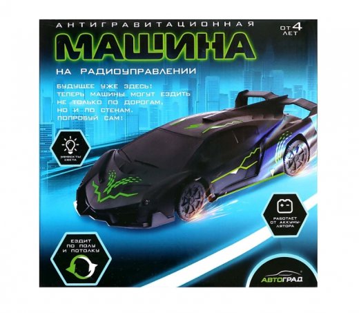 Антигравитационная машина на радиоуправлении Racer умеет ездить по стенам и потолкам! Для этого у неё есть специальная турбина, которая создаёт вакуумную подушку между машиной и поверхностью.