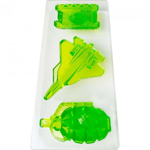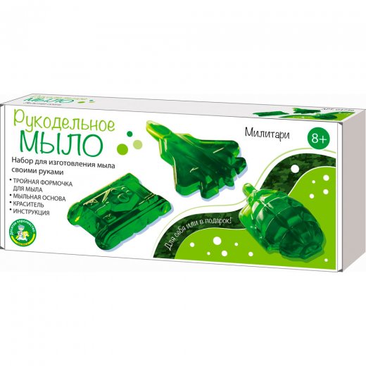 С его помощью можно создать сразу 3 ярких кусочка фигурного мыла в виде самолета, гранаты и танка.
