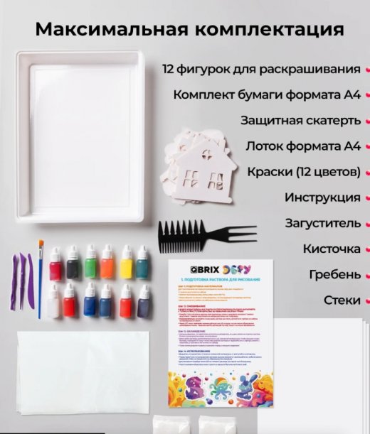 Погрузитесь в мир творчества с уникальным набором для рисования по воде в технике Эбру от бренда QBRIX! Этот яркий и увлекательный набор включает 12 насыщенных цветов, которые позволят вам и вашим детям создать удивительные узоры и рисунки на бумаге формата А4. Как это работает?