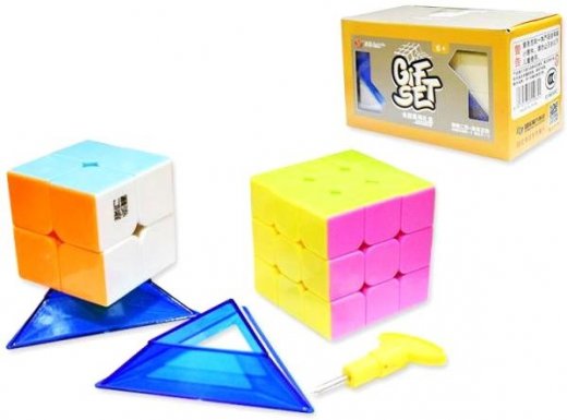 Набор Кубики на подставке снаружи имеют принципиальные отличия от своих собратьев внутри. Блоки оснащены специальными углублениями – «рельсами», благодаря им достигается максимальная скорость и 45-градусная резка углов при сборке. Задача головоломок как и все х кубиков рубиков – собрать в один цвет каждую из сторон. также в наборе имеются удобные и стильные подставки для кубиков.