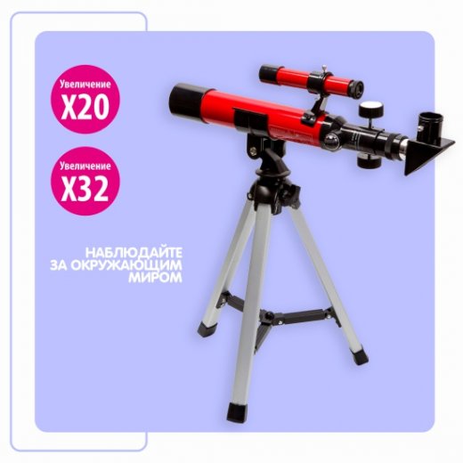 Установите Телескоп Рефрактор на штатив и приступайте к изучению окружающего мира! Телескоп дает х20 и х32 увеличение и позволяет исследовать удаленные объекты, изучать звёздное небо, наблюдать за природными явлениями, смотреть на животных, не нарушая их покой. В наборе окуляр 20 мм, фокусная труба, труба телескопа, противоросник, диагональное зеркало, регулятор фокусировки, регулятор азимутального фиксатора, линза объектива, регулятор фиксатора высоты, азимутальная монтировка, алюминиевая тренога, окуляр более высокой мощности 12,5 мм, поддерживающие стойки треноги, жидкостный компас, видоискатель 5х18