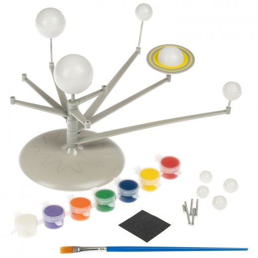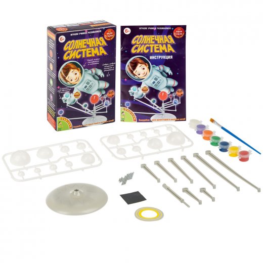В наборе: модель солнечной системы, краски, кисть, иллюстрированная инструкция.