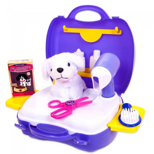 Чудо чемоданчик для ухода за домашним питомцем – позволит ребенку на некоторое время ощутить себя владельцем настоящего зоомагазина. Игровой набор позволит детям ощутить на себе всю ответственность, которая ложиться на плечи владельцев собак. В компактном чемоданчике находится игрушечный щенок и все необходимые инструменты для того, чтобы ухаживать за своим очаровательным питомцем или другими игрушками: фен, расчёска, ножницы и другие аксессуары. Набор удобно брать с собой дорогу, поэтому ухаживать за своим питомцем можно каждый день.