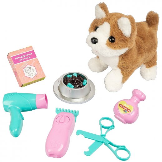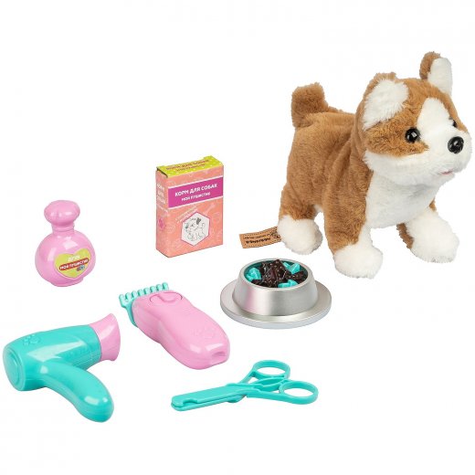 В игровом наборе "Салон "Мой пушистик" есть всё, что необходимо для ухода за четвероногим любимцем. В комплекте коробка "Корм для собак", духи "Мой пушистик", фен, тример для груминга, миска для корма и конечно же, сам пушистик - бело-коричневый хаски, который умеет ходить, вилять хвостом, лаять и реагировать на поглаживания! С этим набором не соскучится не один ребенок! Собака (размер 17 см) работает от батареек (батарейки в набор не входят).