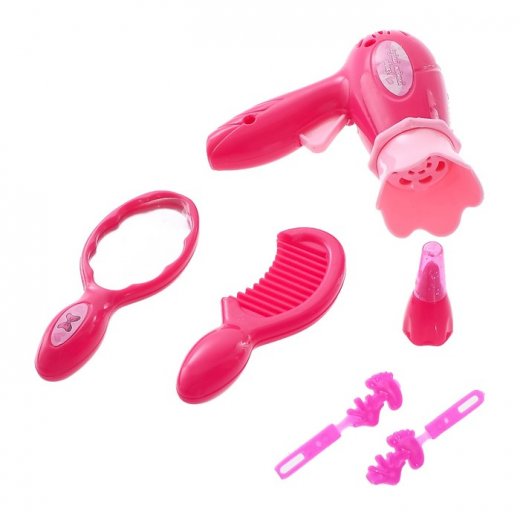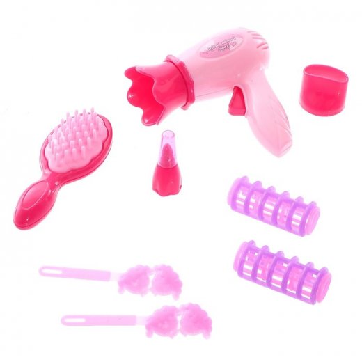 Фен, зеркальце и расчёска помогут создать неповторимую укладку, а помада и две милые заколочки завершат модный образ.