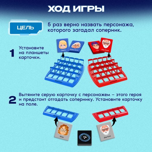 Проверьте интуицию с настольной игрой «Особые приметы»! Догадайтесь, какой персонаж у вашего соперника на уме. Догадались? Не расслабляйтесь — угадать один раз недостаточно, ведь для победы нужно обыграть соперника 5 раз!