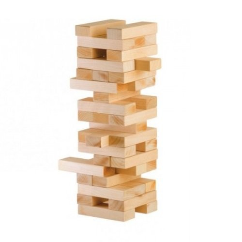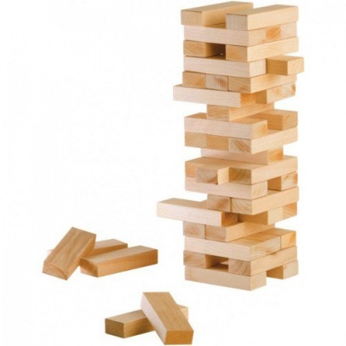 Когда башня построена игроки начинают по очереди тянуть по бруску из любого места башни (брать бруски с самого верхнего уровня, конечно, нельзя) и класть из на верх башни по тому же принципу, что и при ее строительстве.