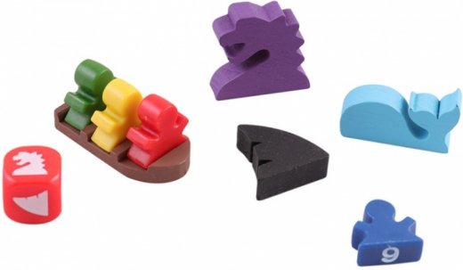 8. Начиная с первого игрока и далее по часовой стрелке, игроки ставят по одной Лодке на свободную (без других Лодок и Морских Змеев) клетку моря, рядом с тайлом Местности. Продолжайте, пока игроки не выставят все свои Лодки.