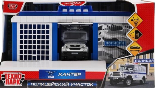 - в комплекте: 3-х секционный гараж, модель полицейской машины «УАЗ Hunter»