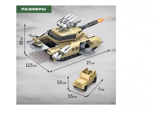 - Транспортный комплекс представляет собой танк, в который помещаются 5 машинок и 2 вертолёта.