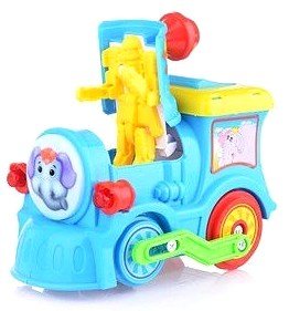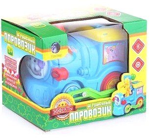 Замечательный паровозик обязательно порадует вашего малыша. У игрушки есть световые и звуковые эффекты, которые непременно привлекут внимание вашего малыша надолго. Паровозик гладкий и приятный на ощупь, выполнен в ярких цветах. Детали паровозика окрашены по-разному, поэтому Ваш малыш с удовольствием, в игровой форме, выучит названия цветов. Спросите у него, какого цвета колесики, труба, крыша, глазки игрушки.