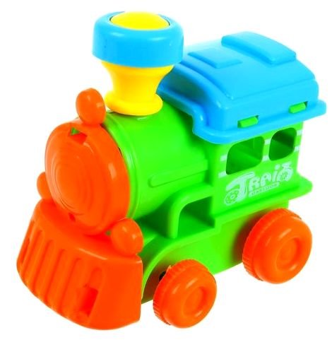 Паровоз БИБИКИ Детский – станет любимой игрушкой Вашего малыша. Все детали паровозика окрашены по-разному, поэтому Ваш малыш с удовольствием, в игровой форме, выучит названия цветов. Спросите у него, какого цвета колесики, труба, крыша, глазки игрушки. Паровоз снабжен инерционным механизмом, что позволяет ему ускоряться вперед. Чтобы привести машинку в движение, достаточно слегка толкнуть игрушку назад, и, благодаря механизму инерции, паровоз проедет самостоятельно вперед на достаточно большое расстояние.