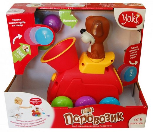 "Паровозик"- это яркая и интересная игрушка, которая порадует вашего малыша и подарит ему множество позитивных эмоций. Игрушка выполнена в виде красочного паровозика. Красочный яркий паровозик с собачкой-машинистом, который движется вперед благодаря шарикам. Положи шарик в трубу паровозика и нажми на собачку-паровозик отправится в путь. Чтобы паровозик двигался вперед надо постоянно бросать шарики в трубу паровоза. Шарики в процессе движения вылетают из задней части паровозика, малышу нужно подбирать их и снова бросать в трубу, иначе паровозик остановится. Каждый шарик, брошенный в трубу обеспечивает 10 секунд движения паровозика. Нажмите на собачку и услышите сначала паровозный гудок а потом веселую песенку. Движение паровозика также сопровождается различными мелодиями, фразами и звуковыми эффектами. Игрушка выполнена из высококачественной пластмассы, безопасной для вашего ребенка.