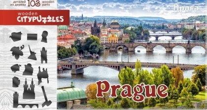 Фигурные пазлы Citypuzzles - это пазлы с деталями причудливой формы. При этом часть элементов выполнены в форме предметов, относящихся к теме основной картинки. В данном случае, это предметы и памятники, ассоциирующиеся с Прагой. Часть таких элементов целые, часть складывается из нескольких деталей. Детали пазла выполнены из фанеры. Изображение с помощью специального принтера нанесено прямо на дерево (самый прочный вариант). Такие необычные пазлы понравятся и детям и взрослым. Даже те, кто не любят собирать классические пазлы, будут с интересом рассматривать и стыковать фигурные детали.