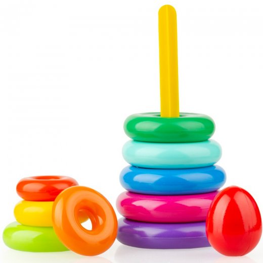 Задача малыша — собрать кольца в правильной последовательности (от самого большого до самого маленького).