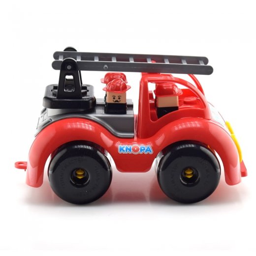 Пожарная машинка "Крепыш" позволяет проигрывать сюжеты чрезвычайных ситуаций, примерять различные модели поведения. Дополнительную ценность машинке придает наличие фаркопа и отверстия для веревочки, которая дает возможность ребенку сопровождать движение игрушки. С пожарной машинкой "Крепыш" хорошо сочинять игровые сюжеты внутри пространства машинки, ведь в её кабине разместилась целая пожарная команда: два в кабине и два в кузове, а пожарная лестница может вращаться и подниматься.