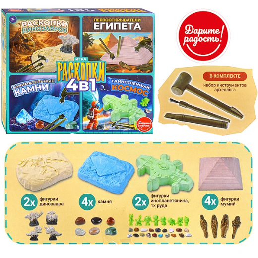 Купить Набор 4 в 1 Раскопки в Новосибирске Вы можете в магазине настольных и развивающих игр "Игры Почемучек"