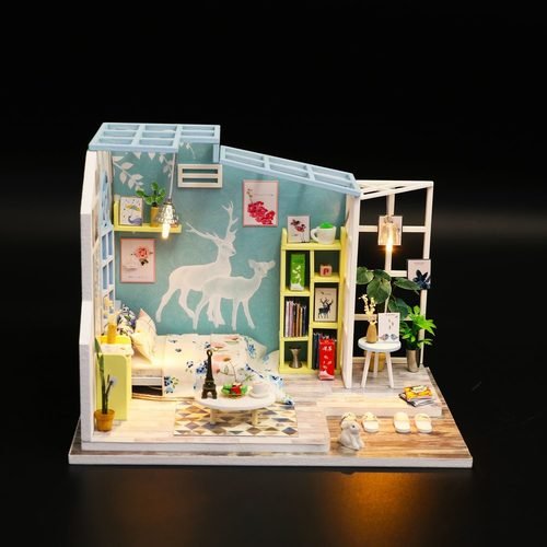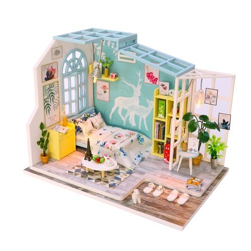Румбокс Diy House Летний сон - это милейший конструктор, дизайнеры которого сильно постарались воплотить мечты о жизни там, где круглый год светит солнце! Интерьер комнаты в свежих ярких тонах, необычный рисунок на обоях и кровать возле классического деревянного окна - это всё настолько приятно глазу и мило, что сборка румбокса будет настоящим удовольствием, а готовая комната будет радовать своего хозяина каждый день и час!