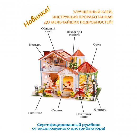 Румбокс - это готовый интерьерный конструктор для творчества от официального дистрибьютера HOBBY DAY. Внутри набора Вы найдете все необходимое, чтобы воссоздать собственными руками кукольный интерьер в миниатюре. Для Вашего удобства разработана новая пошаговая инструкция. Во всех наборах новый усиленный клей без запаха. Светодиодная подсветка. Все детали выполнены из безопасных материалов и необыкновенно реалистичны. Это занимательное увлечение способствует развитию творческих способностей, усидчивости, совместному времяпрепровождению детей и их родителей.