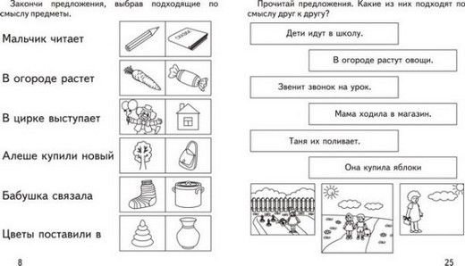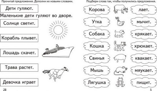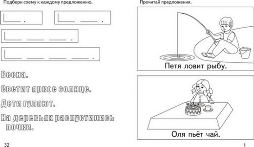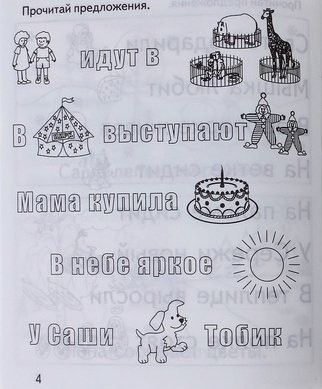 Занятия по этой тетради помогут малышу овладеть навыком чтения несложных предложений, а так же понимать их смысл. В процессе обучения, дети составляют предложения из предложенных слов, дописывают их, а так же выбирают подходящую картинку в соответствии с прочитанным текстом.