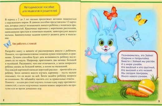 Чем старше дети, тем больше вопросов они задают. Обучающие книги для детей в возрасте от 2 до 3 лет помогут ребёнку расширить кругозор. Тема этой книги: «Изучаем противоположности».